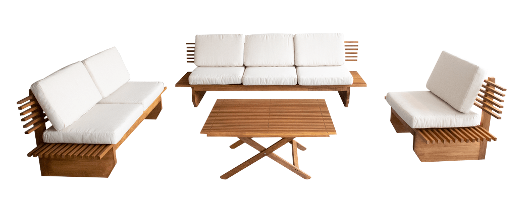 3 plazas: 230 x 65 x 85 cm.2 plazas: 160 x 65 x 85 cm.1 plaza: 100 x 65 x 85 cm.mesa: 100 x 70 x 47 cm.espesor de cojines: 10 cm.
